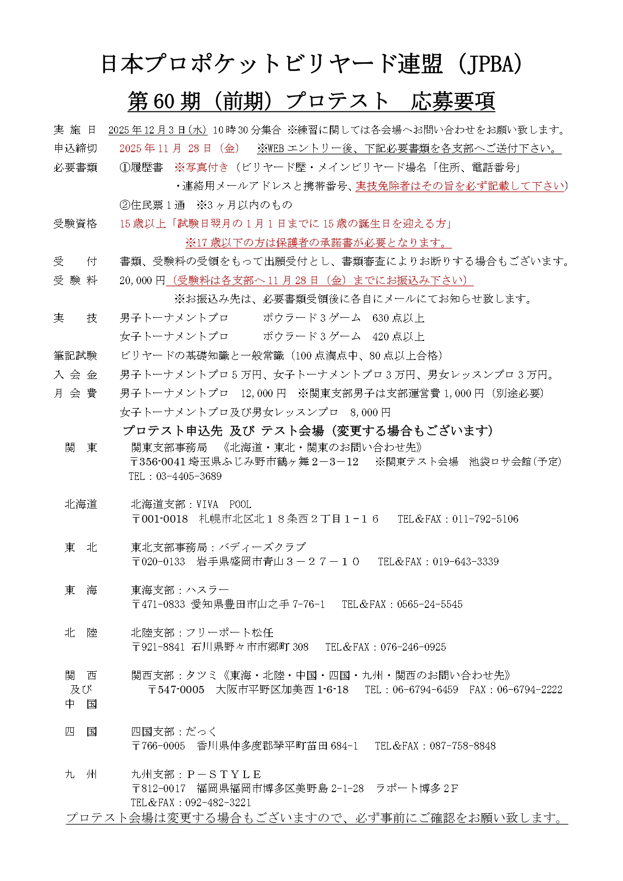 西日本在住の方はJPBA関西支部事務局での受付となります。 - (4)実技テスト